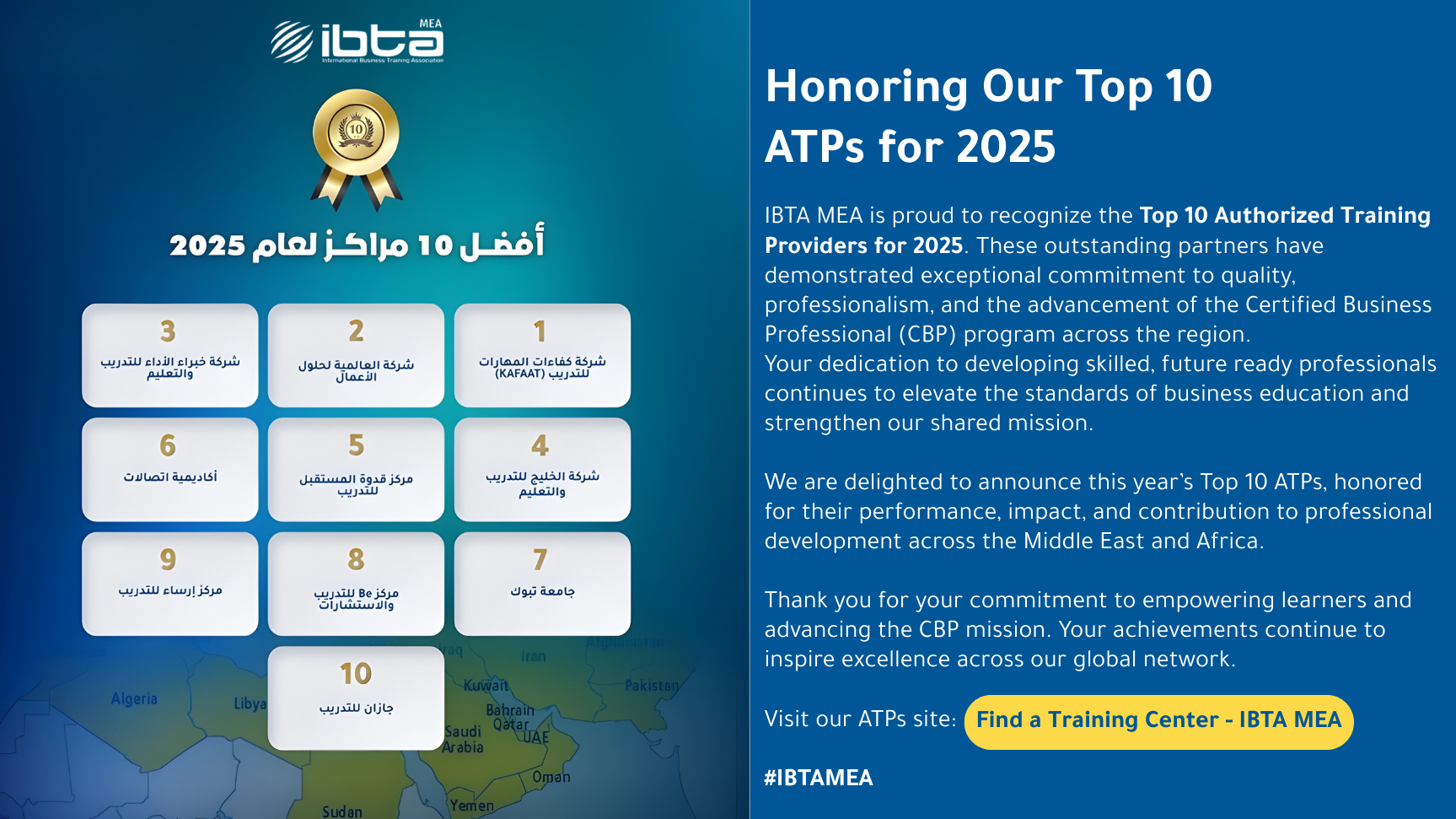 IBTA MEA maintains rigorous standards of excellence throughout its operations, from curriculum development & certification to customer support, ensuring that clients receive top-tier learning experiences.