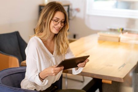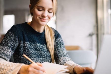 Beautiful Woman Studying Online